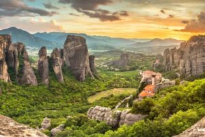 Запрошуємо на екскурсію до одного з найцікавіших місць Греції, як для туристів, так і для паломників. Наскельні монастирі Метеори. Метеори, як і Афінський Акрополь входять до списку 20 найвизначніших місць світу. Неординарність Метеор полягає в поєднанні феноменального природного ландшафту з творінням людських рук. Грандіозні скелі, що височіють на рівній поверхні у Фессалійській долині досягають висоти 400 метрів, що само по собі є дуже рідкісним явищем в природі. Ці дивні, ніби повислі в повітрі скульптури, отримали назву Метеори (від грецького «метеорос» — ті , що висять в повітрі). Метеори відносяться до найбільш відвідуваних місць паломництва для усіх християн і в той час одним з найбільш відвідуваних місць Греції для іноземних туристів.