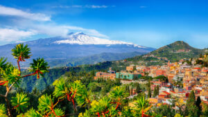 Із порту Порцалло ми відправимось через провінцію Катанія до м. Таорміна. Це невелике місто, яке стало улюбленим місцем відпочинку європейців ще наприкінці XIX ст. тут можна побачити і римський амфітеатр, і споруди часів арабського панування, і християнські святині. З міста відкривається неймовірний вид на вулкан Етну.