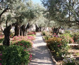Гетсиманський сад — оливковий сад, розташований у нижній частині Оливкової гори біля струмка Кедрон де молився Ісус в ніч перед його арештом і розп’яттям. ДНК показав, що всі оливи з саду походять від одного батьківського дерева – можливо, від того, що росло тут за часів Ісуса Христа. Невеликий, всього 1200 м2, сад примикає до базиліки Боріння (церкви Всіх Націй) — тут перед вівтарем знаходиться вершина скелі, на якій, за переказами, відійшовши від сплячих апостолів, Христос пристрасно молився, обливаючись кровавим потом, просив Отця небесного: «Отче! О, як волієш пронести мимо Мене цю чашу! Втім не моя воля, а Твоя нехай буде » (Лк. 22:42). Це і було Моління про Чашу. Укріплений молитвою, Ісус розбудив учнів і зустрів поцілунок Іуди, за яким і впізнали Христа. Потім був арешт, допит в Синедріоні, вирок Пілата, шлях на Голгофу, кара.